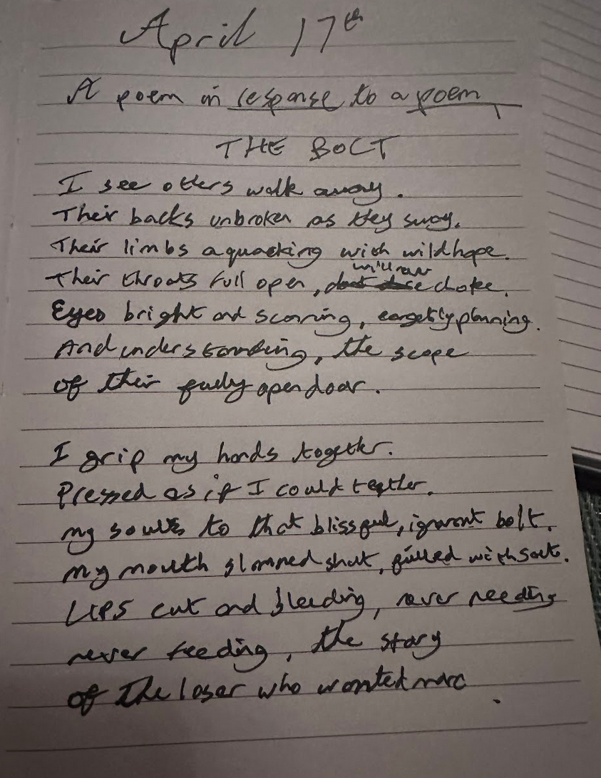 The Bolt (NaPoWriMo Day 17)