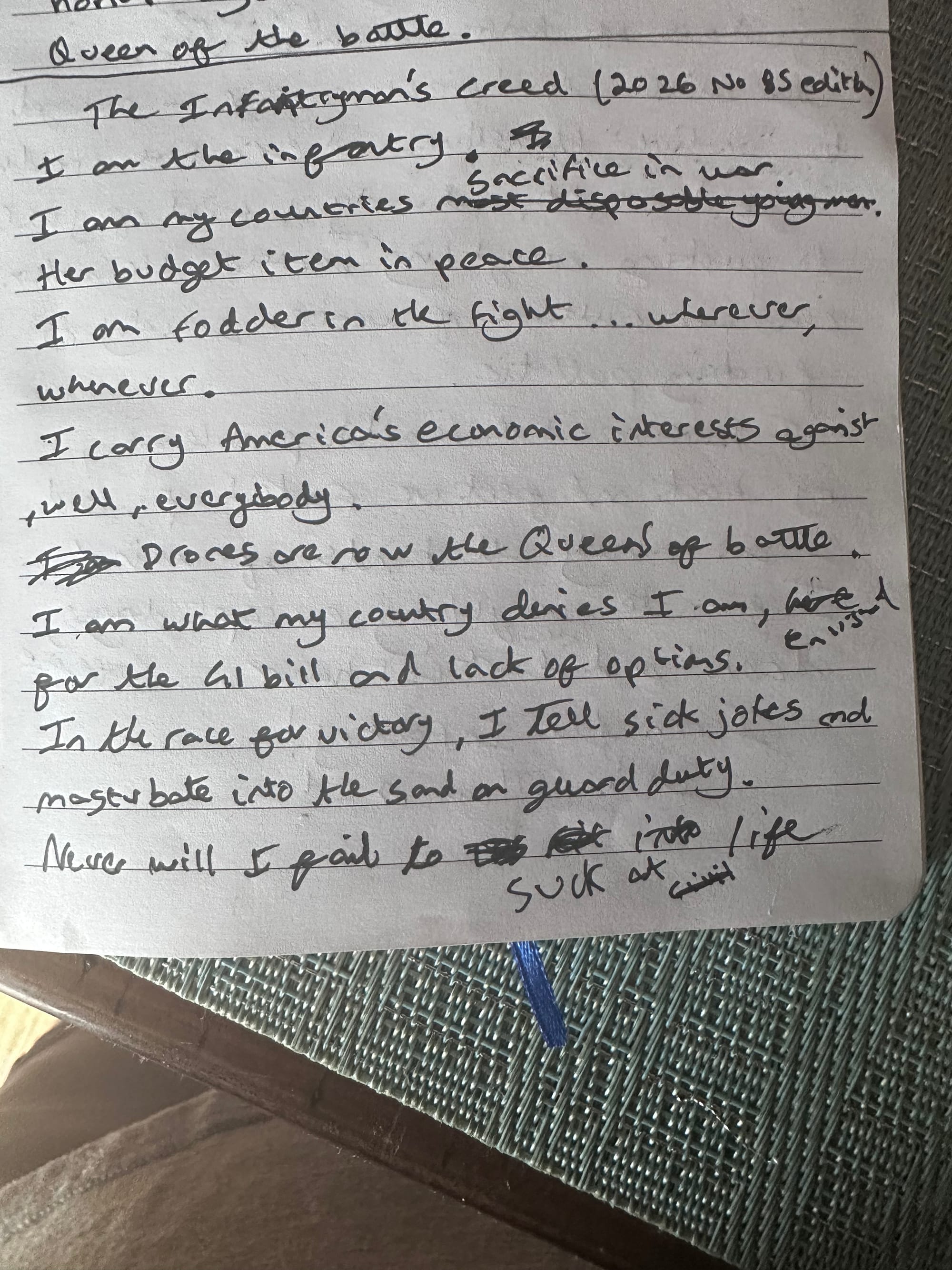 The Veteran Infantryman's Creed (NaPoWriMo 2026 Day 3)